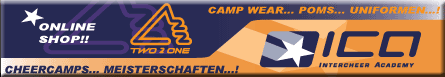 ![]() Wir haben schon viele Rückmeldungen erhalten. Teamname, Ort, Bundesland, Internet Team: Mighty Angels Verein: great gera skates e.V. Gera Thüringen great.gera.skates.ev@t-online.de Team: AFV Jenaer Hanfriends Verein: AFV Jenaer Hanfriends Jena Thüringen www.princesses.de Team: Starlets-Cheerleader Verein: SV Friedrichsgabe Norderstedt Schleswig-Holstein http://www.starlets-cheerleader.de Team: Holstein Kiel Cheerleader Verein: KSV Holstein von 1900 e.V. Kiel Schleswig-Holstein www.holstein-kiel.de Team: Sealords Cheerleader Verein: TSB Flensburg e.V. Flensburg Schleswig-Holstein www.sealords.de Team: Cheerleader-Schilksee-Shells Verein: Cheerleader-Schilksee-Shells Kiel Schleswig-Holstein Team: Maniacs Cheerleader Verein: Maniacs Cheerleader Elmshorn Schleswig-Holstein www.fighting-pirates.net Team: VfR Neumünster Verein: VfR Neumünster von 1910 Neumünster Schleswig-Holstein www.vfr-cheerleader.de Team: American Sports Club Lübeck e.V. Verein: American Sports Club Lübeck e.V. Lübeck Schleswig-Holstein www.asc-luebeck.de Team: Crazy Cats Cheerleader Verein: American Sports Club Lübeck e.V. Lübeck Schleswig-Holstein Team: Wedel Satellites Verein: SC Rist Wedel Wedel Schleswig -Holstein www.wedel-satellites.de Team: Black White Cats Verein: SV Dessau 05 e.V. Dessau Sachsen-Anhalt www.blackwhitecats.de Team: Black Shadows Verein: Black Panther Halberstadt Halberstadt Sachsen-Anhalt www.black-shadows-hbs.de.vu Team: Cats of Pray Verein: Mountain Tigers Wernigerode e.V. Wernigerode Sachsen-Anhalt www.mountain-tigers.de Team: Jacka's Ice Devils Verein: Eissport Weißwasser e.V. Weißwasser Sachsen www.esw-online.de Team: Dancing Leaves Verein: Grün Weiß Mohsdorf - Dancing Leaves Burgstädt Sachsen www.cheerleader-mohsdorf.de Team: Leipzig Lions e.V. Verein: Leipzig Lions e.V. Leipzig Sachsen www.leipzig-lions.de Team: Teufelinos & Devilmaniacs Verein: CVV Teufelinos e.V. Auerbach Sachsen www.teufelinos.de Team: White Angelz & Crazy Angelz Verein: White Angelz Cheerleader e.V. Plauen Sachsen www.white-angelz.de Team: Little Arrows, Silver Arrows, Funky Arrows Verein: VfL Pirna Copitz; Tanzsportzentrum Pirna Sachsen www.tsz-pirna.de Team: Sweet Velvets, Lunicats, Lunatics, LCV Dancer Verein: Lunicats Cheerleader e.V. Dresden Sachsen www.lcv-dresden.de Team: Black Magic Cheerleader Saarbrücken Verein: TSC. Golden Black Powerpack Sbr. e.V.- Saarbrücken Saarland www.black-magic-cheer.de Team: Chaote-Cheerleader Verein: LSG-die Chaote-Klein-Winternheim Klein-Winternheim Rheinland-Pfalz www.die-chaote.de Team: Giborim Altenkirchen Verein: CVJM ASC e.V.,Altenkirchen Altenkirchen Rheinland-Pfalz www.giborim-sports.de Team: FV Heiligenstein Verein: FV Heiligenstein Römerberg Rheinland-Pfalz Team: Golden Eagles Verein: TSV Schott Mainz Golden Eagels Mainz Rheinland-Pfalz www.mainz-Golden-eagles.de Team: Kaiserslautern PIKES Verein: Kaiserslautern PIKES Kaiserslautern Rheinland-Pfalz www.pikesnet.de Team: SpVgg Fischbach Verein: SpVgg Fischbach Idar-Oberstein Rheinland/ Pfalz Team: Magic-paws Verein: Hertener Löwen e.V. Recklinghausen NRW www.magic-paws.de Team: Little Flash, Storm, Thunder Verein: GoldFlash Cheerleader e.V. Köln NRW www.goldflash.de Team: Aces Lucky Cards Verein: DJK "Vorwärts 19" Drensteinfurt NRW www.aces-lucky-cards.de Team: Bielefeld Wildcats Verein: 1. AFC Bielefeld Bulldogs e.V. Bielefeld NRW www.bielefeld-wildcats.de Team: DEG Silver Stars Verein: DEG METRO STARS Düsseldorf NRW www.deg-silver-stars.de Team: LR Devils Verein: LR Ahlen e.V. Ennigerloh NRW www.LR-Devils.de Team: Mighty-Dragons Cheerleader Verein: Cheerproject Cronenberg (Cronenburger Turngemeinde) Solingen NRW www.mighty-dragons-cheer.de Team: Starlets-Cheerleader Bochum Verein: BG Südpark, Abt. Cheerleading Bochum NRW www.starlets-bochum.de Team: Lippstadt Panthers Verein: SC Lippstadt DJK Lippstadt NRW www.lippstadt-panthers.de Team: Dormagen Wizards Cheerleader Verein: TSV Bayer Dormagen Dormagen NRW www.wizards-cheerleader.de Team: Cologne Centurions Cheerleader Verein: Cologne Centurions Footballteam Betriebs-GmbH Köln NRW www.cologne-centurions.de Team: Ice Stars Cheerleader Verein: Ice Stars Cheerleader e.V. Bochum NRW www.icestars-cheerleader.de Team: Paderborn Dolphins Verein: Paderborn Dolphins Paderborn NRW www.pb-mermaids.de Team: Wuppertal Greyhounds Verein: Wuppertal Greyhounds Schwelm NRW www.wuppertal-greyhounds.de Team: Borken Seacats Verein: AFC Borken Sharks e.V. Borken NRW www.borken-sharks.de Team: Münster Mammuts Verein: 1.American Football Club Münster Mammuts e.V. Münster NRW www.mammuts.com Team: Wildcats Cheerleader Leverkusen Verein: TSV Bayer 04 Wildcats Cheerleader Leverkusen Leverkusen NRW www.wildcats-lev.de Team: Cardinals Verein: AFC Assindia Cardinals Essen e.V. 1983 Essen NRW www.cardinals-cheerleader.de.vu Team: Silver Company( Silverettes, Silver Trolls, Silver Smarties) Verein: Silver Company Dortmund Dortmund NRW www.silverettes.de Team: Hannover-Royals Verein: 1. Hannoverscher Cheerleader Verein e.V. Hannover Niedersachsen www.hannoverroyals.de Team: Bad Sistas, Bad Girls Verein: TSA CREATIV im GVO Oldenburg e.V. Oldenburg Niedersachsen www.gvo-oldenburg.de/tanzen/cheerleading Team: Wolfsburg Honeybees Verein: TV Jahn Wolfsburg e.V. Wolfsburg Niedersachsen www.cheerleader-honeybees.de Team: Grasshoppers Verein: VfR Weddel Weddel bei Braunschweig Niedersachsen www.weddel-cheer.de Team: Redangels Verein: TV-Jahn Schneverdingen Schneverdingen Niedersachsen Team: Dragons Cheerleader Verein: MTV Schandelah-Gardessen Schandelah Niedersachsen www.dragons-cheerleader.de.vu Team: 1. Braunschweiger Cheerleader e.V. Verein: 1. Braunschweiger Cheerleader e.V. Braunschweig Niedersachsen www.bsv-bs.de/Start.htm Team: RED PEPPER, Senior Coed Verein: TKH ( Turnklub Hannover) Hannover Niedersachsen www.turn-klubb.de Team: SV Borussia Salzgitter Verein: SV Borussia Salzgitter Salzgitter Niedersachsen www.arials.de Team: Blue Flames Verein: Goslarer Sport Club 08/Sud